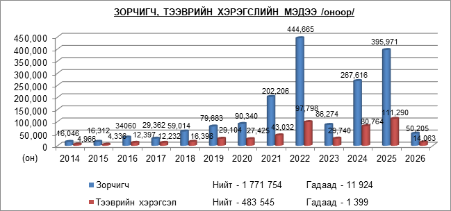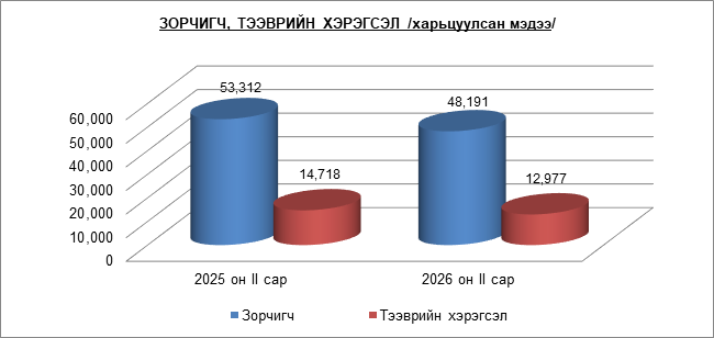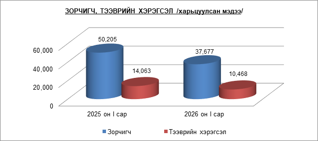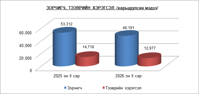 “АЛТАНБУЛАГ” ЧӨЛӨӨТ БҮСИЙН 2026 ОНЫ I, II САРЫН ЗОРЧИГЧ, ТЭЭВРИЙН ХЭРЭГСЛИЙН СТАТИСТИК МЭДЭЭ