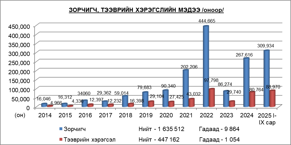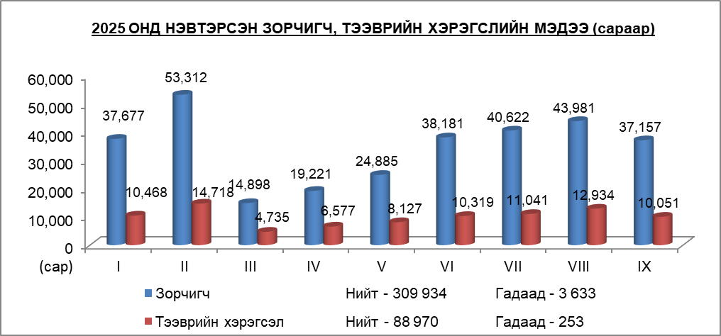 “АЛТАНБУЛАГ” ЧӨЛӨӨТ БҮСИЙН 2025 ОНЫ IX САРЫН ЗОРЧИГЧ, ТЭЭВРИЙН ХЭРЭГСЛИЙН СТАТИСТИК МЭДЭЭ