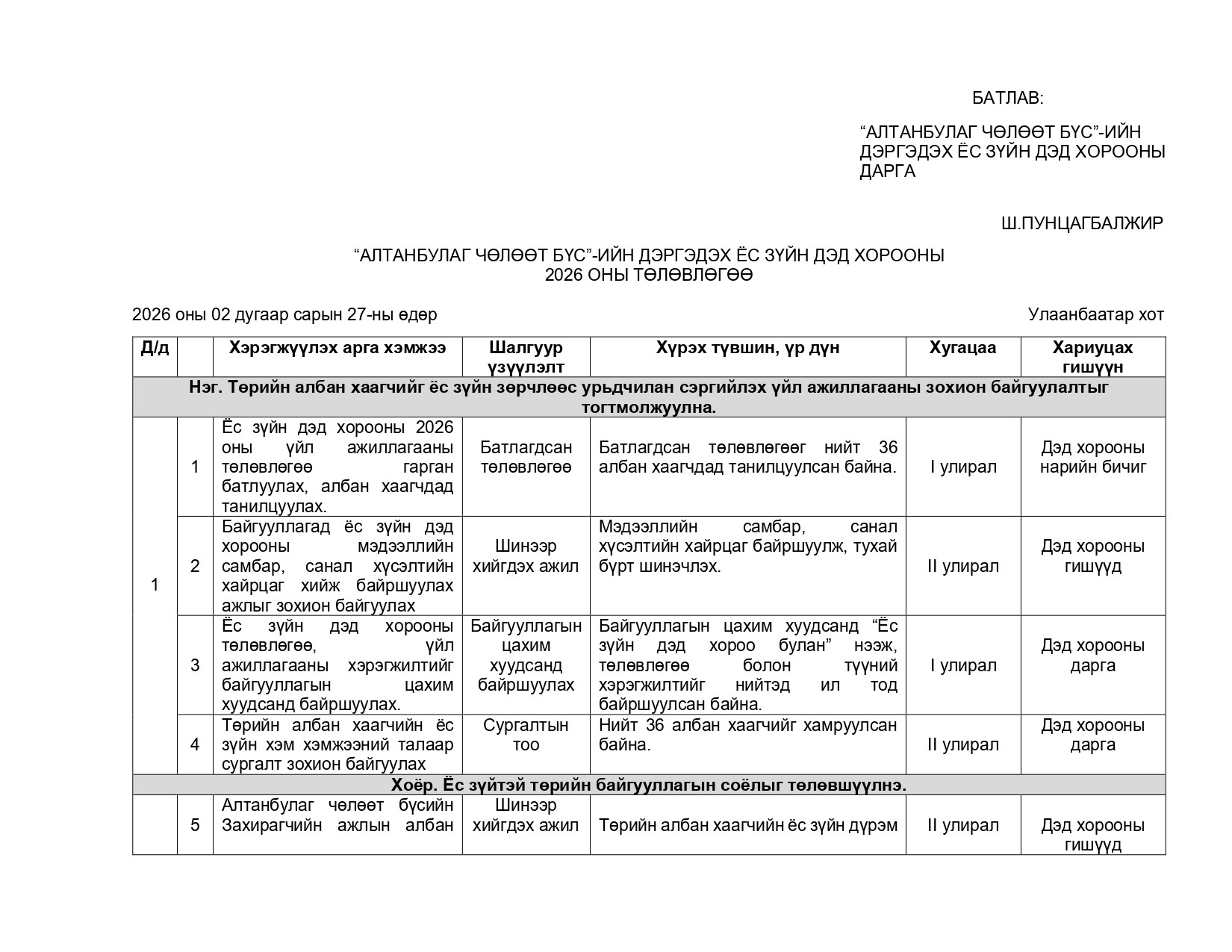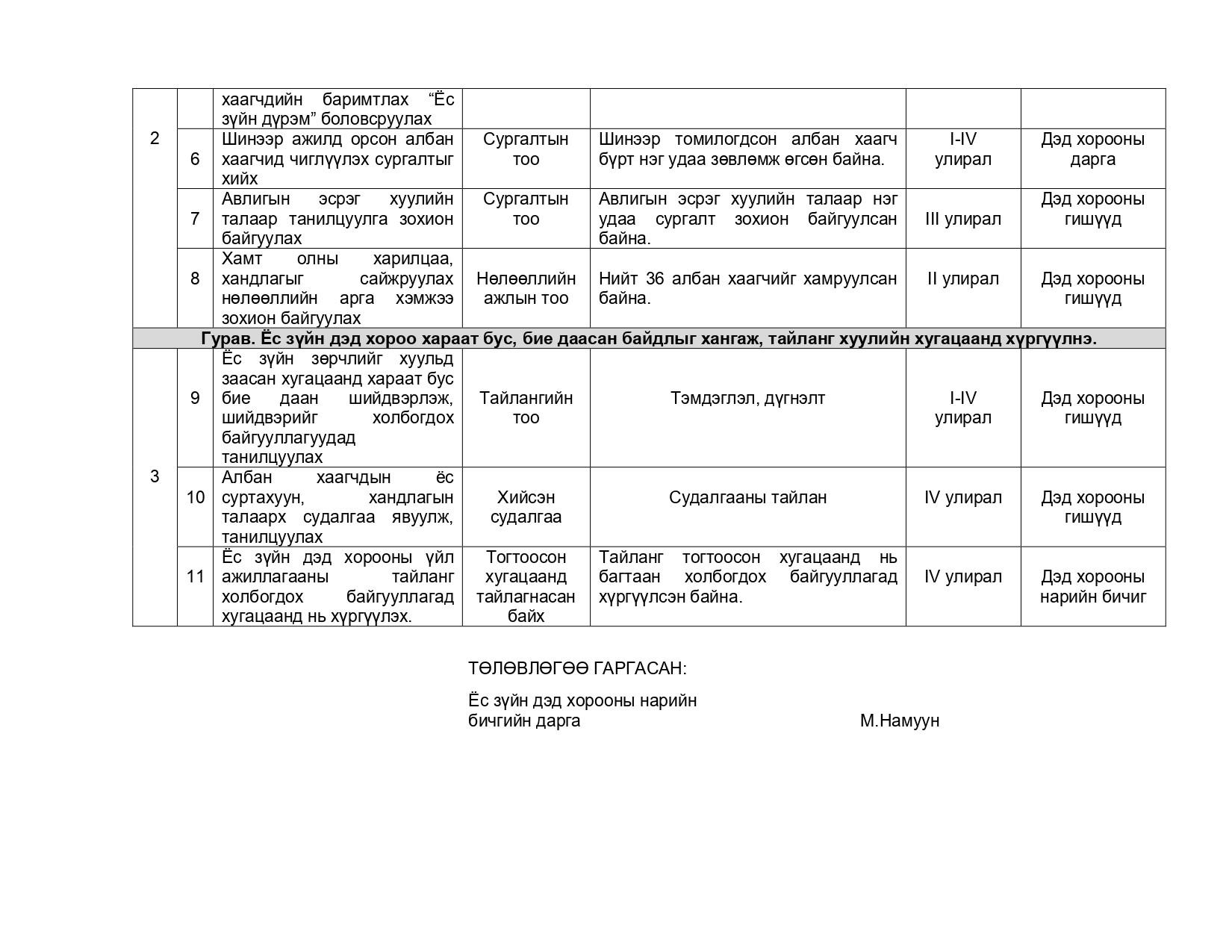 Гэрээ эрх зүй, хүний нөөцийн хэлтэс, Ёс зүйн хорооны нарийн бичгийн дарга М.Намуун