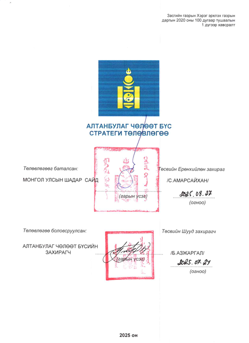 АЛТАНБУЛАГ ЧӨЛӨӨТ БҮС СТРАТЕГИ ТӨЛӨВЛӨГӨӨ ТАТАЖ ҮЗЭХ >>>