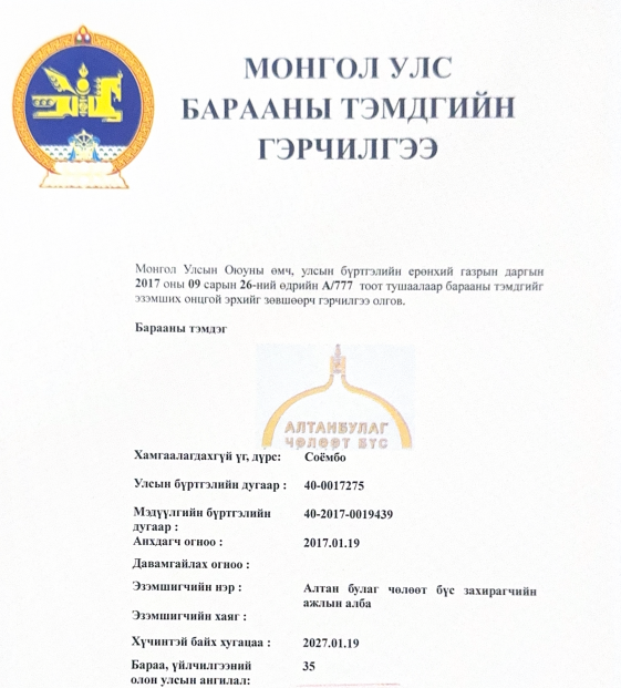 “Алтанбулаг" чөлөөт бүсийн Захирагчийн ажлын алба / Засгийн газрын 11-р байр 11 давхар, ЧД, Улаанбаатар/ +97651261435