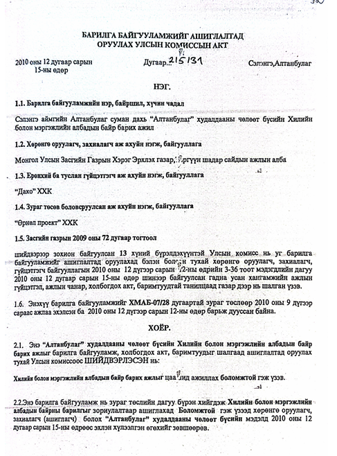 БАРИЛГА БАЙГУУЛАМЖИЙГ АШИГЛАЛТАД ОРУУЛАХЫГ ЗӨВШӨӨРСӨН УЛСЫН КОМИССЫН ДҮГНЭЛТ ТАТАЖ ҮЗЭХ >>>