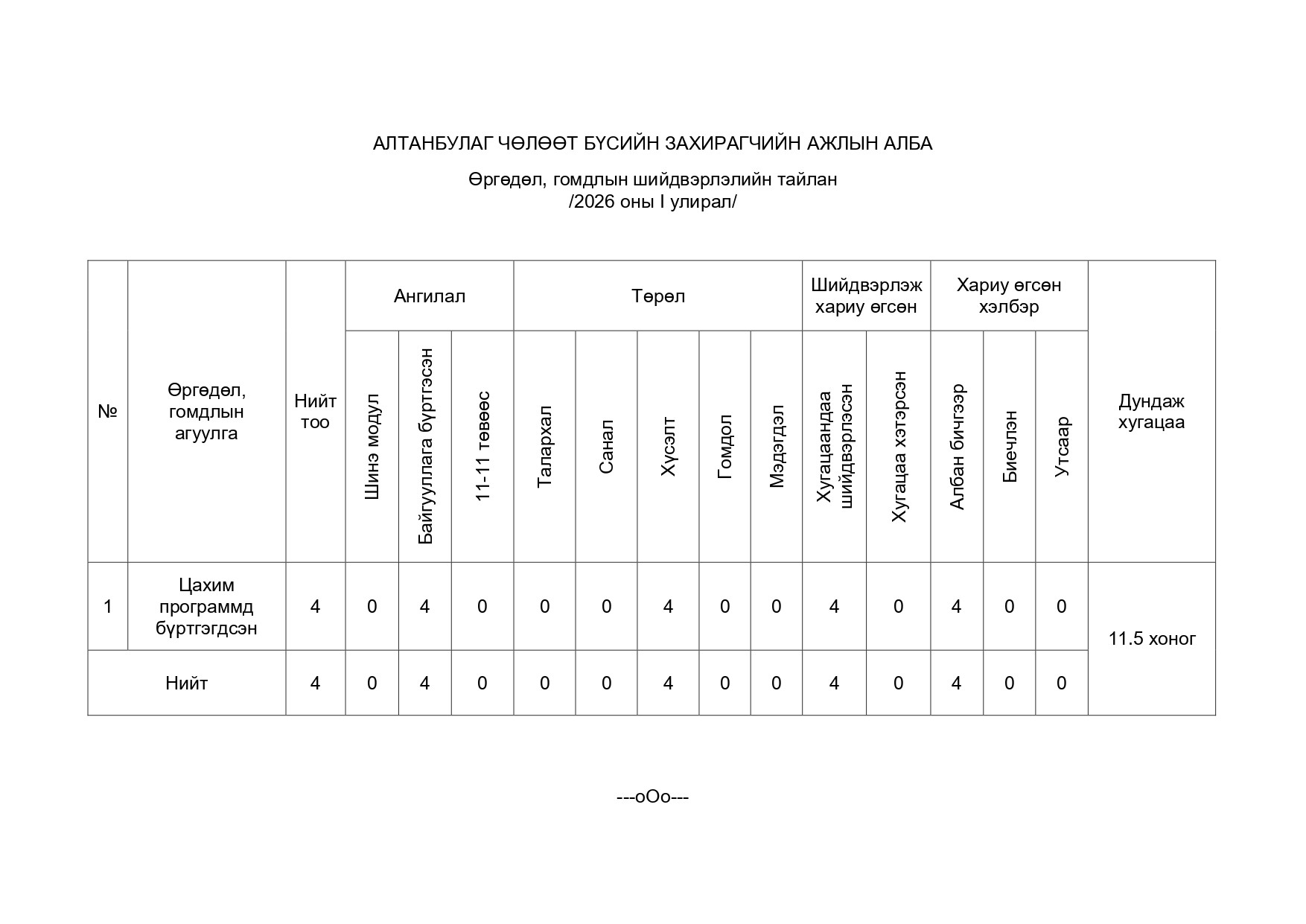 ӨРГӨДӨЛ, ГОМДЛЫН ШИЙДВЭРЛЭЛИЙН ТАЙЛАН /2026 ОНЫ I УЛИРАЛ/ ТАТАЖ ҮЗЭХ>>>