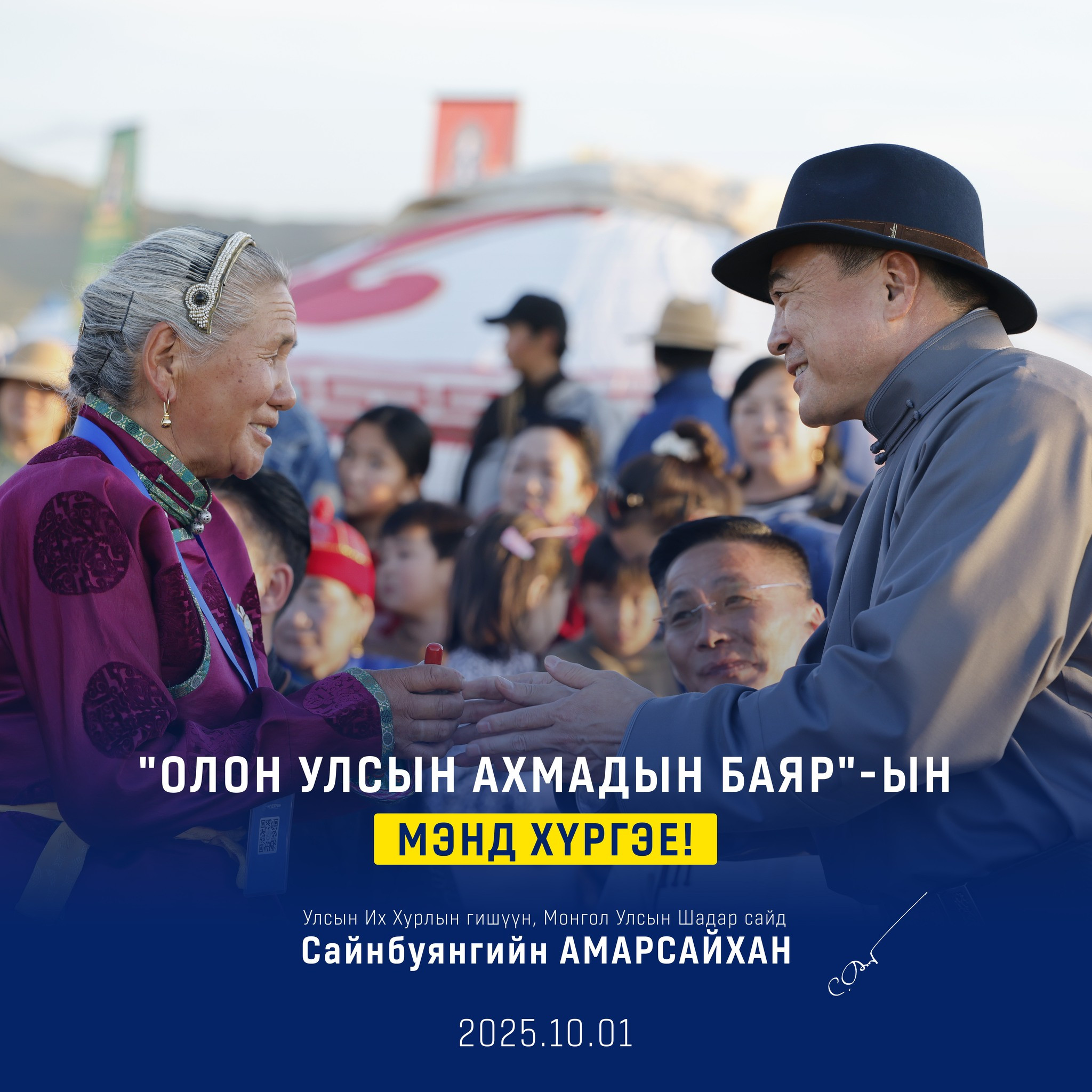 Монгол Улсын хөгжил дэвшил, бүтээн байгуулалтын их үйлсэд хувь нэмэр оруулж, улс орныхоо хөгжлийн жолоог залалцсан хүндэт ахмадууддаа энэ өдрийн мэнд дэвшүүлье!